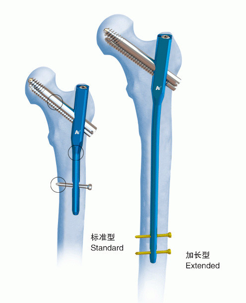 ●Το κύριο καρφί έχει μια γωνία εκτροπής 5 °, η οποία είναι εύκολο να παρεμβληθεί από την κορυφή μεγάλο trochanter.